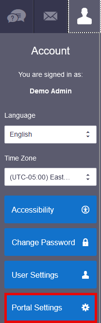 If you can't see Portal Settings from the Account menu, you may not have the required Permissions. Only a System Admin can see this option.
