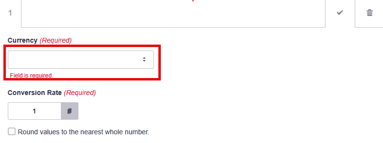Clicking the default currency will open a modal frame that displays all currently configured currencies.