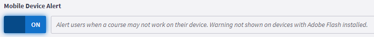 Under the Syllabus section of the Edit Course page there is an optional toggle. The optional toggle is Mobile Device Alert. This provides a Mobile App exclusive notification that the content of this Online Course may not work on a mobile device.