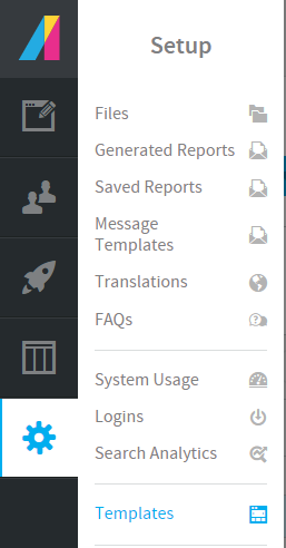 - Navigate to Setup from the Admin Menu and select Templates. You will be routed to the Templates page.