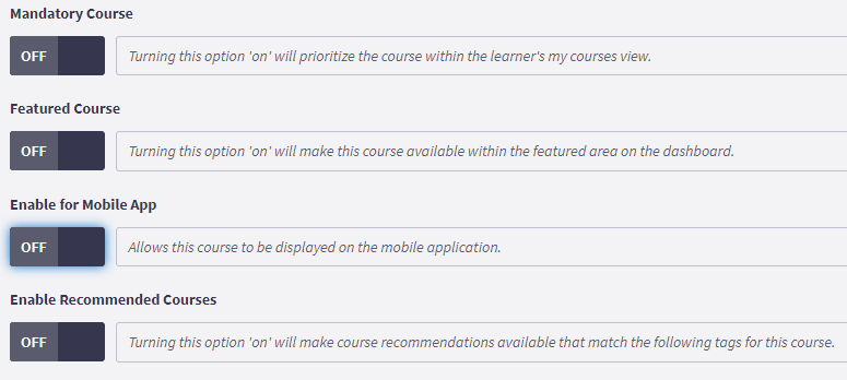 Follow these steps to locate the Enable for Mobile App toggle for an Online Course: