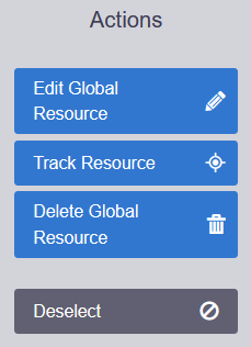 Selecting a single Global Resource makes the Edit, Track, and Delete Global Resource options available in the Actions menu on the right-hand side of the page.