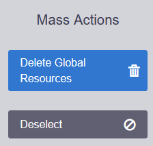 Global Resources can be managed from the Global Resources page in the Admin Interface. You can apply both single and mass actions to Global Resources.
