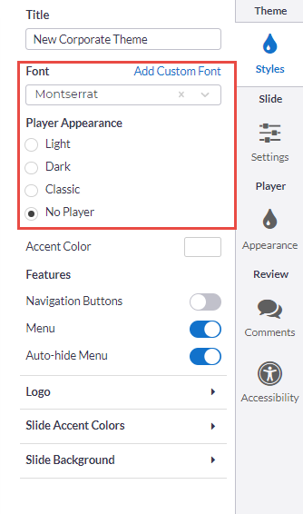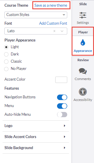 9. Return to the Player Appearance tab, and apply the theme to any course using the Course Theme menu