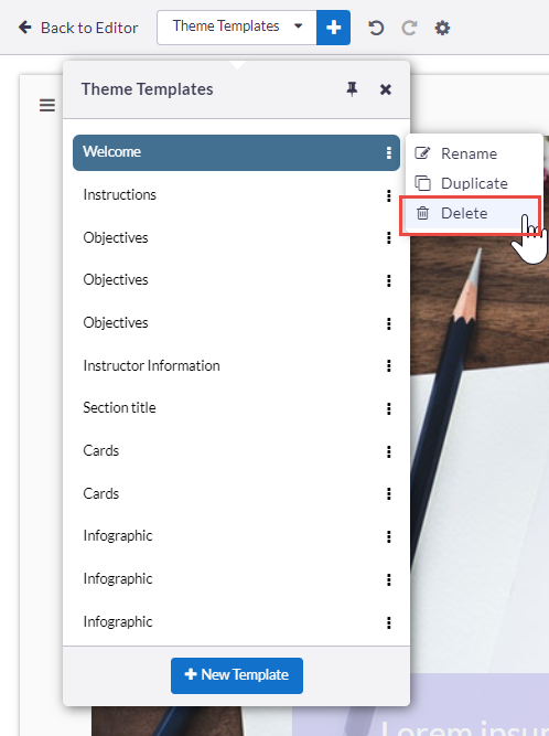 - In the Theme Editor, remove any unwanted templates from the Theme Template menu