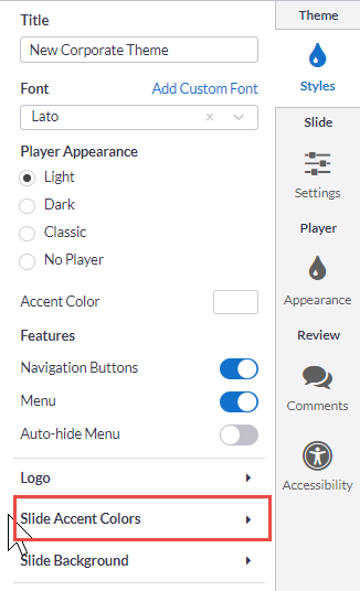 This article will present the steps for setting up a theme in Create using an existing presentation template (*pptt).